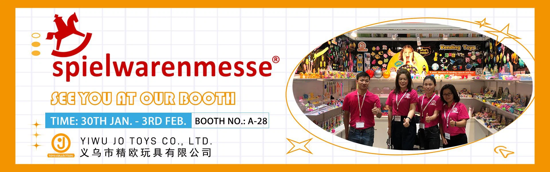 Yiwu JO Toys Co., Ltd. foi fundada em 2011, localizada na cidade de Yiwu, província de Zhejiang. Nós somos um fabricante profissional, especializado em pesquisa, desenvolvimento e produção de diferentes formas e tamanhos de cápsulas de venda automática, brinquedos de cápsula, brinquedos TPR, brinquedos de ventilação, brinquedos intermitentes, brinquedos inovadores e outros. Todos os nossos produtos são feitos de material ecológico e podem cumprir os padrões internacionais de qualidade e são muito apreciados em vários mercados diferentes em todo o mundo.